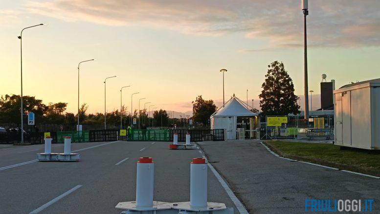 L’area attorno al Bluenergy Stadium è stata trasformata in una zona rossa protetta da transenne, barriere mobili e cemento, con un anello di protezione per controllo e filtraggio. In vigore il divieto di transito in via Candolini nel tratto compreso tra via Candonio, all’altezza del cimitero dei Rizzi, e via Bottecchia, con accesso consentito esclusivamente ai veicoli autorizzati.