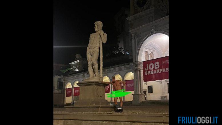La notte di Udine è stata scossa da un episodio a dir poco bizzarro, che ha visto protagonista un uomo in Piazza Libertà. L’uomo si è calato i pantaloni rimanendo completamente nudo di fronte alla Loggia del Lionello, uno dei simboli storici e culturali della città.