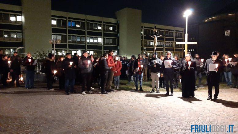 Oltre ai partecipanti con le fiaccole, alla Via Crucis ospedaliera prendono parte in modo non meno intenso diverse persone che nell’ospedale di Udine si trovano in cura o in servizio. Chi può si accoda al “serpentone”, molti altri seguono le preghiere affacciandosi alle finestre.