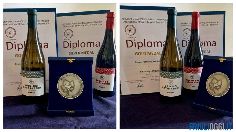 I vini dell’Università di Udine premiati a concorso enologico internazionale. Medaglia d’oro per l'”Oro dei Patriarchi” e argento per il “Rosso dei Patriarchi”. I due vini più rappresentativi dell’Azienda agraria universitaria “Antonio Servadei” dell’Università di Udine hanno conquistato i gradini più alti del podio al concorso enologico tra atenei europei “International University Wine Competition” di Maribor (Slovenia). Per il terzo anno consecutivo l’Ateneo friulano ha visto premiati i sui vini ottenuti dalla miscela di alcune varietà di vite resistenti, selezionate e coltivate dall’Azienda agraria. L’iniziativa mira a rafforzare la cooperazione tra gli atenei europei nel campo dell’agricoltura e delle scienze della vita e a trasferire conoscenze, idee ed esperienze.