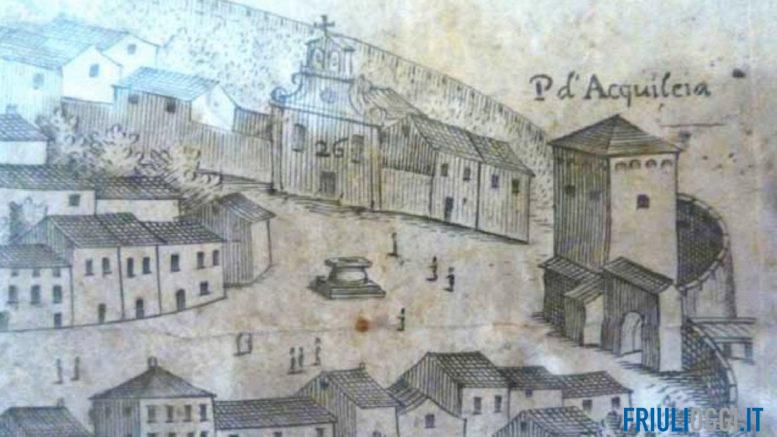 La torre di porta Aquileia fa parte della quinta ed ultima cortina muraria eretta a difesa della città tra il 1330, in parte durante il patriarcato di Beato Bertrando, e il 1440 e, insieme alla Torre di porta Villalta è l’unica superstite delle tredici porte che collegavano la città con gli assi viari e commerciali più importanti.