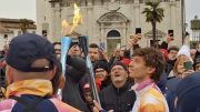 La pioggia non frena l’entusiasmo di Udine, Tara Dragas accende il braciere olimpico