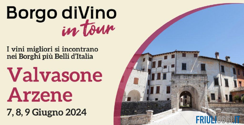 Sarà Valvasone Arzene a ospitare la sesta tappa di Borgo diVino in tour edizione 2024, la rassegna enogastronomica di eccellenza organizzata da Valica S.p.a – MarTech company, leader di settore nel marketing tecnologico con un focus specifico su turismo ed enogastronomia – in collaborazione con il Consorzio Ecce Italia e la Pro Valvasone; l’iniziativa è promossa dall’Associazione “I Borghi più belli d’Italia” e patrocinata dall’Associazione Nazionale di Città del Vino.